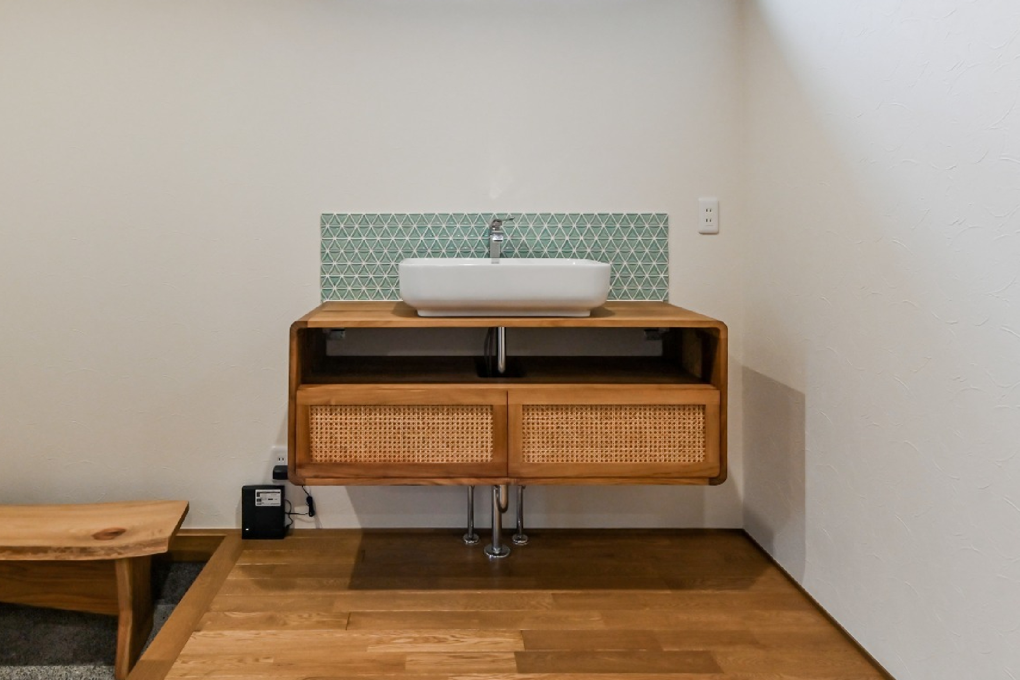 お施主様支給の家具を活かしてボウルと水栓を設置したオリジナル