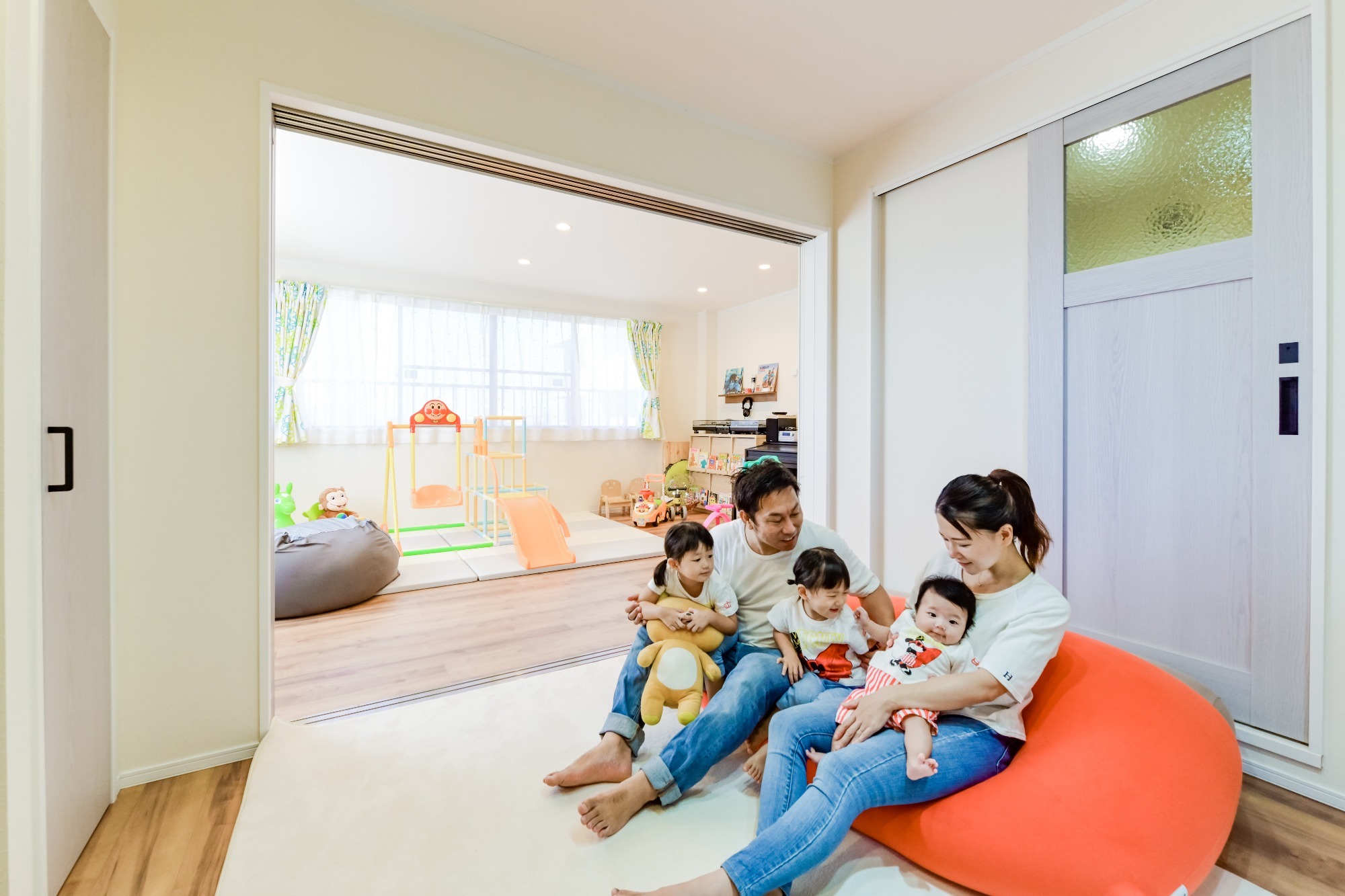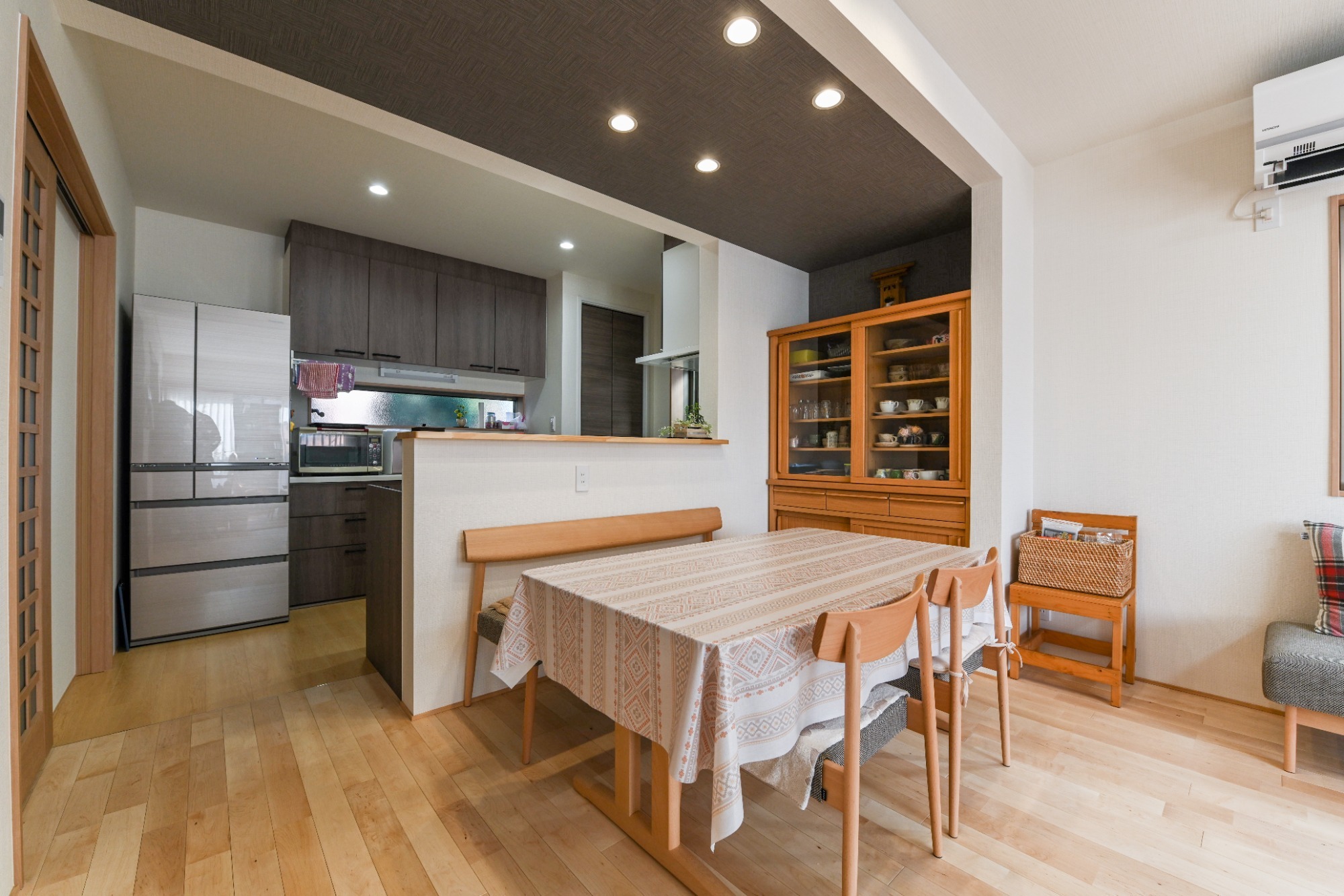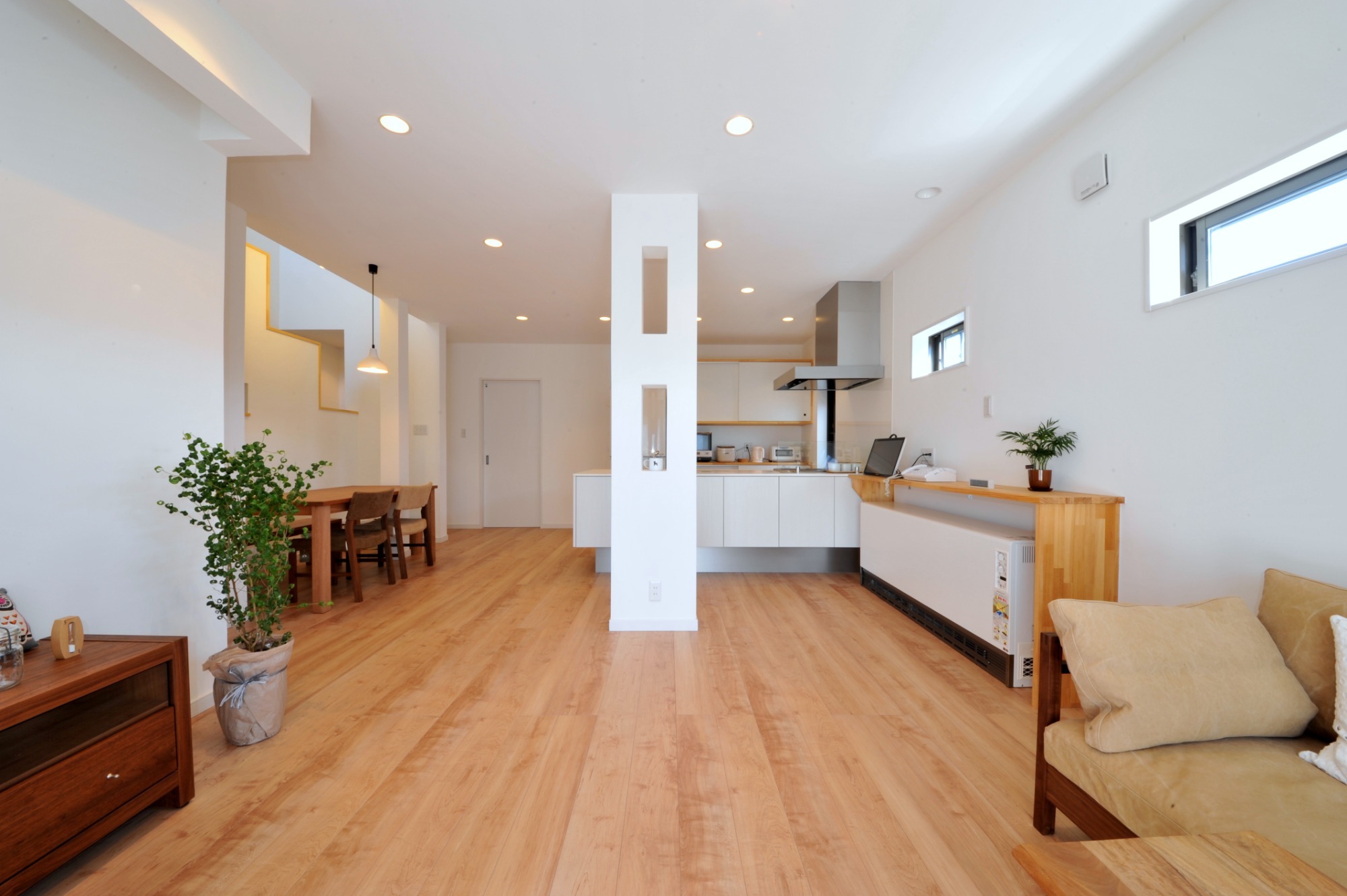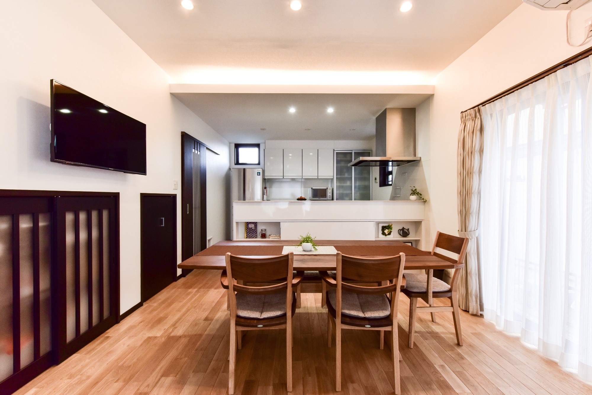 吊り戸棚のない対面キッチンで視線が抜ける開放感