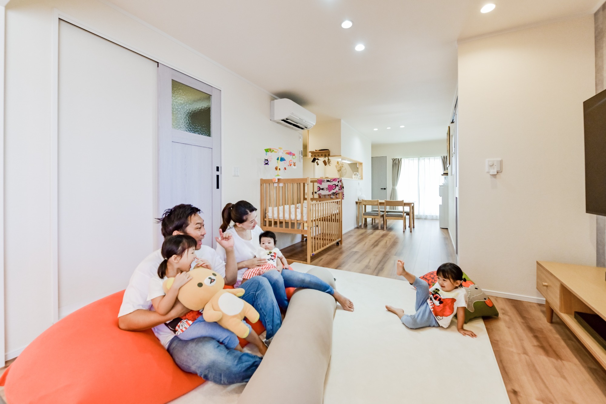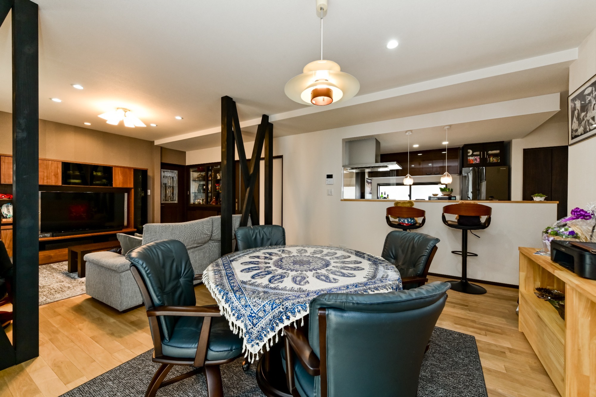 筋交いを見せた設計が リビングに個性と広がりを演出