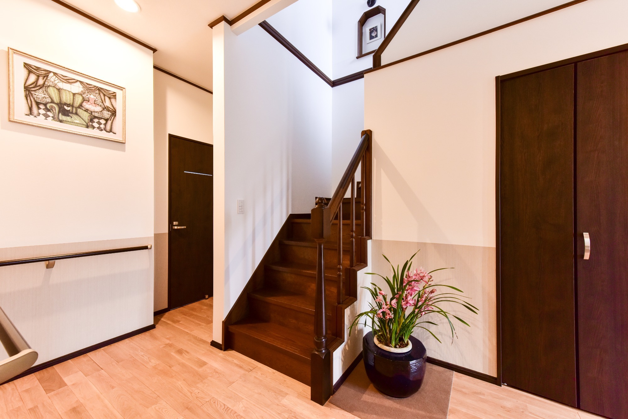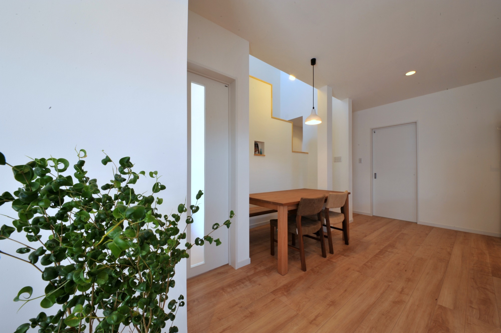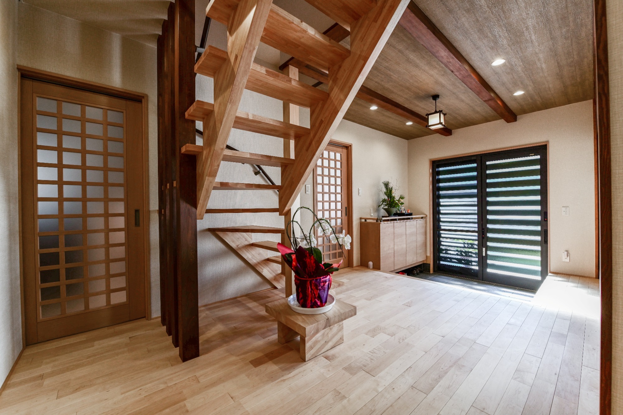 吹抜け階段から光が差し込む 明るく開放的な空間