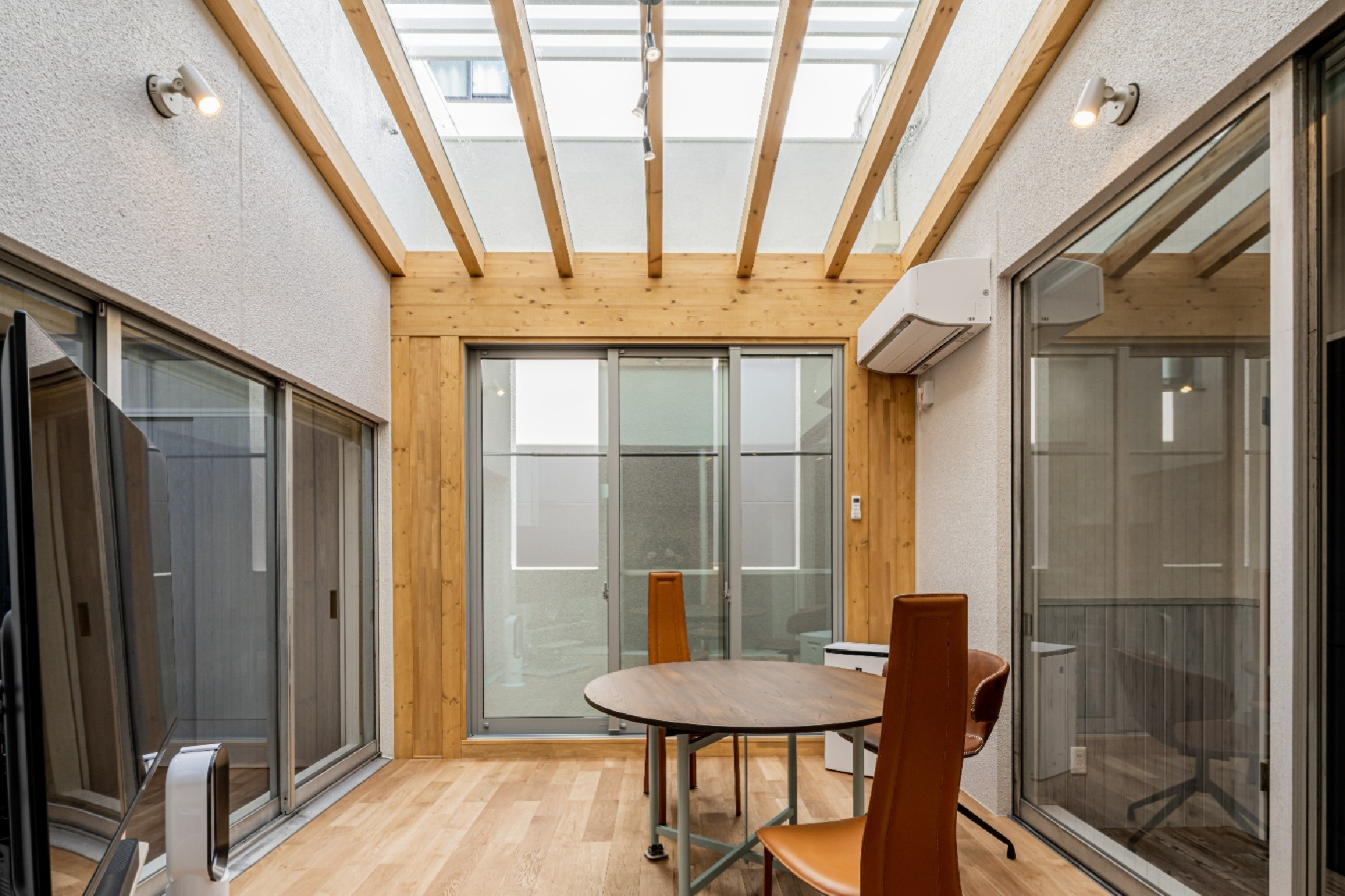 - バルコニーだった場所はガラス屋根のリビングルームに大変身