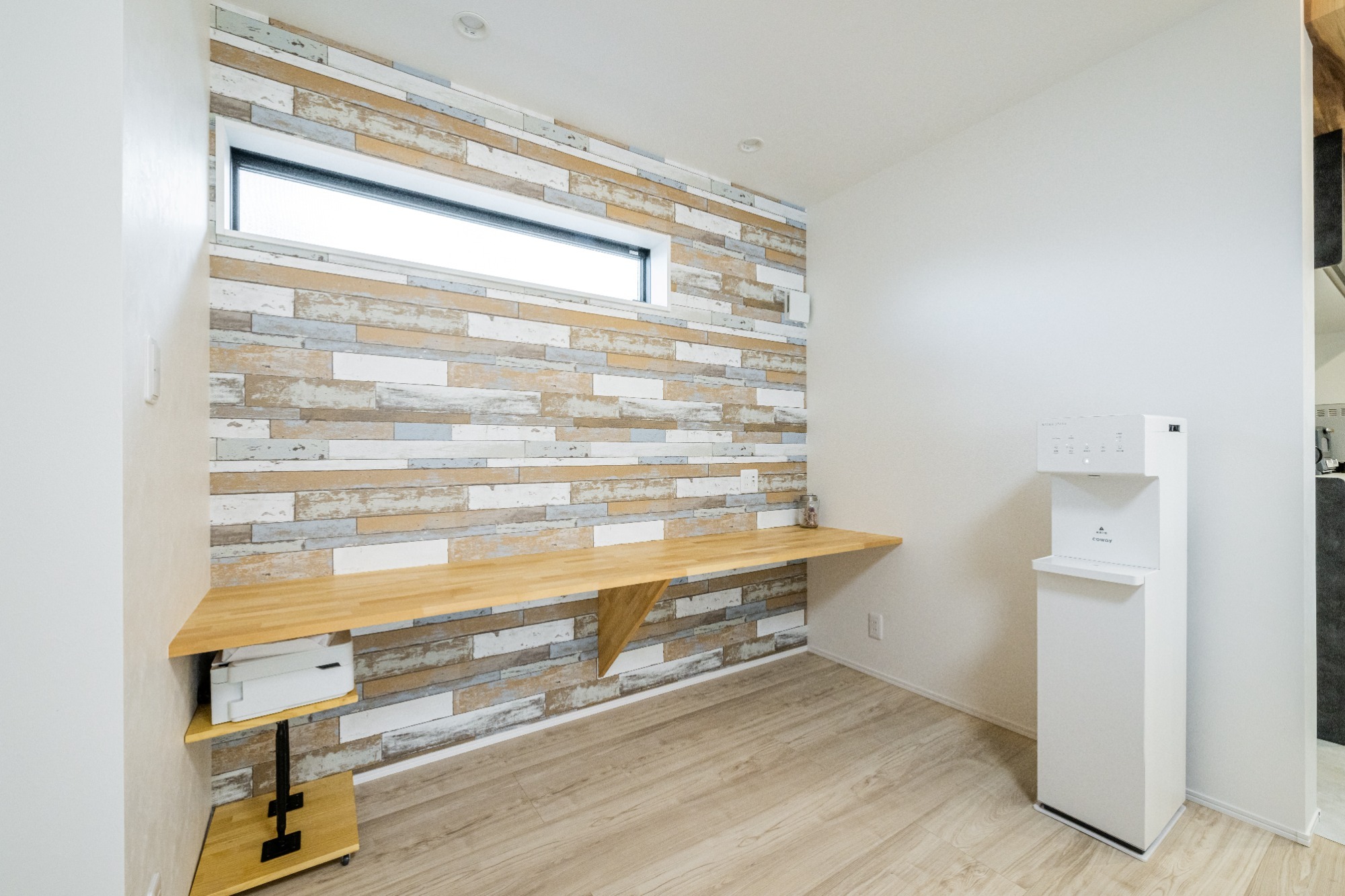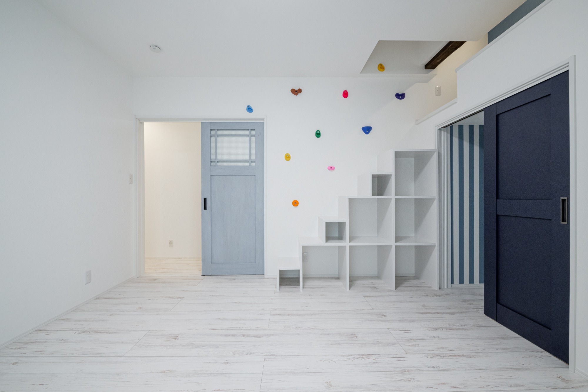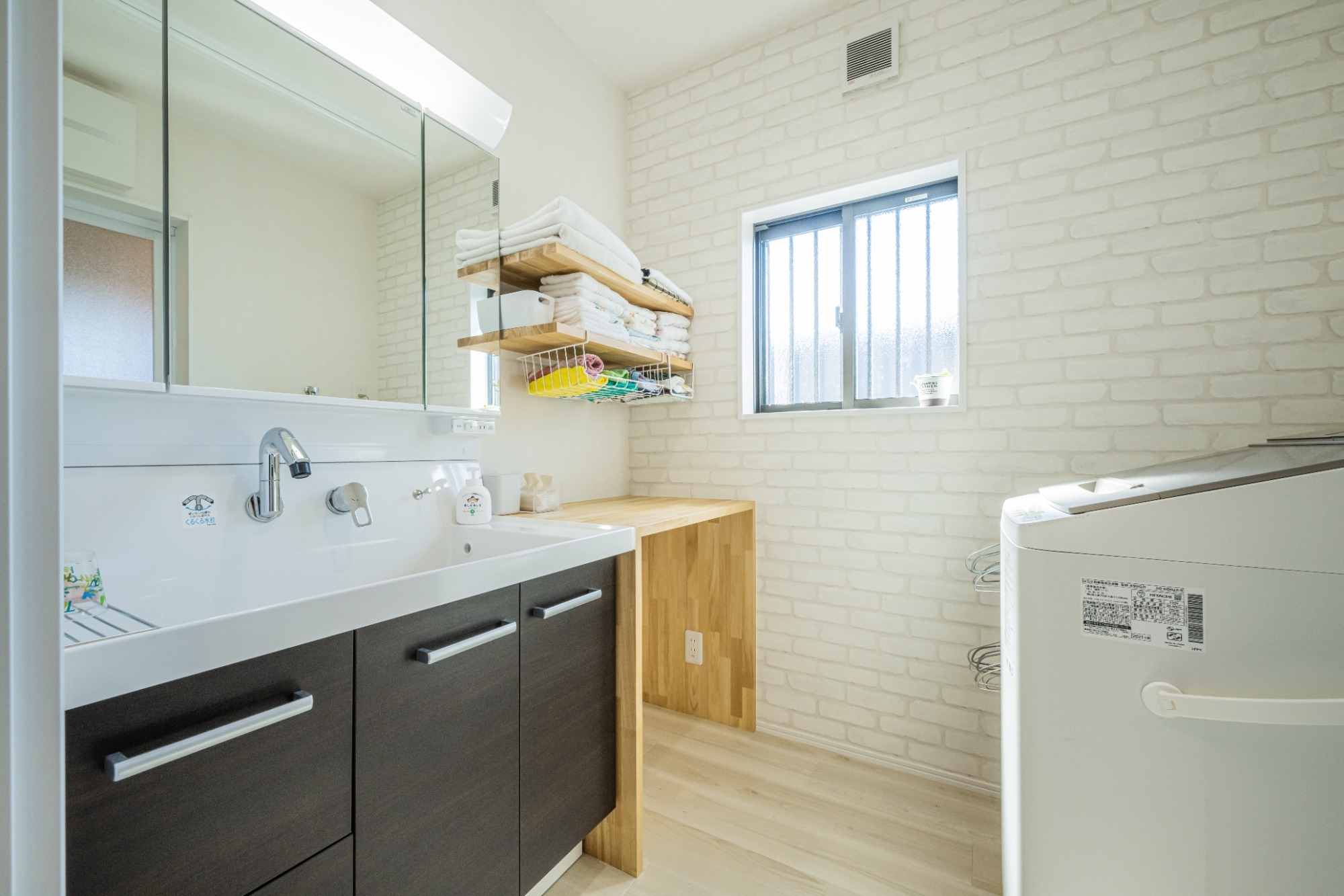- 壁厚を利用して飾り棚を作り、必要な壁で収納を設置