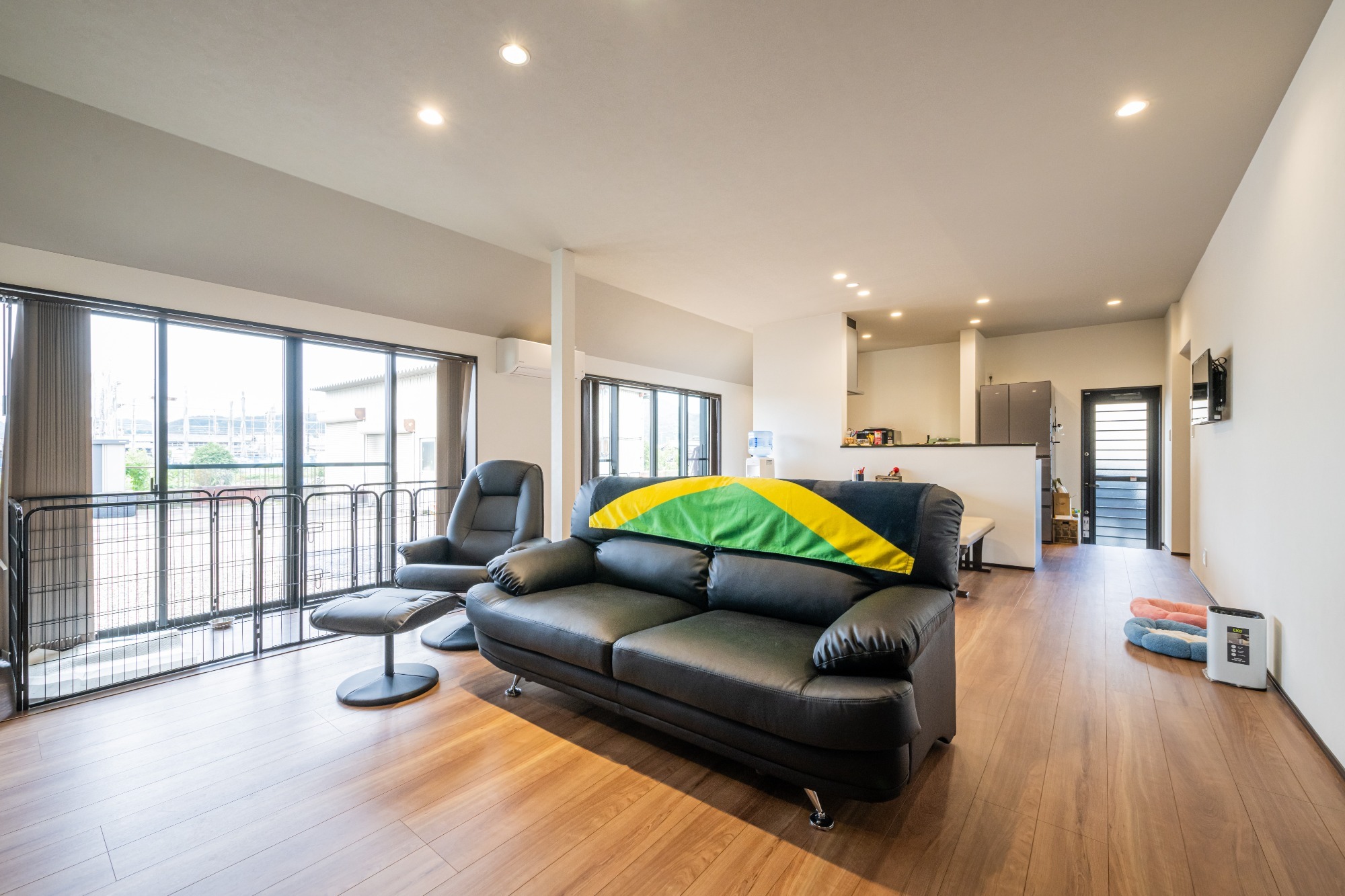 - リビングの床を1段上げてキッチンからリビング全体が見渡せる
