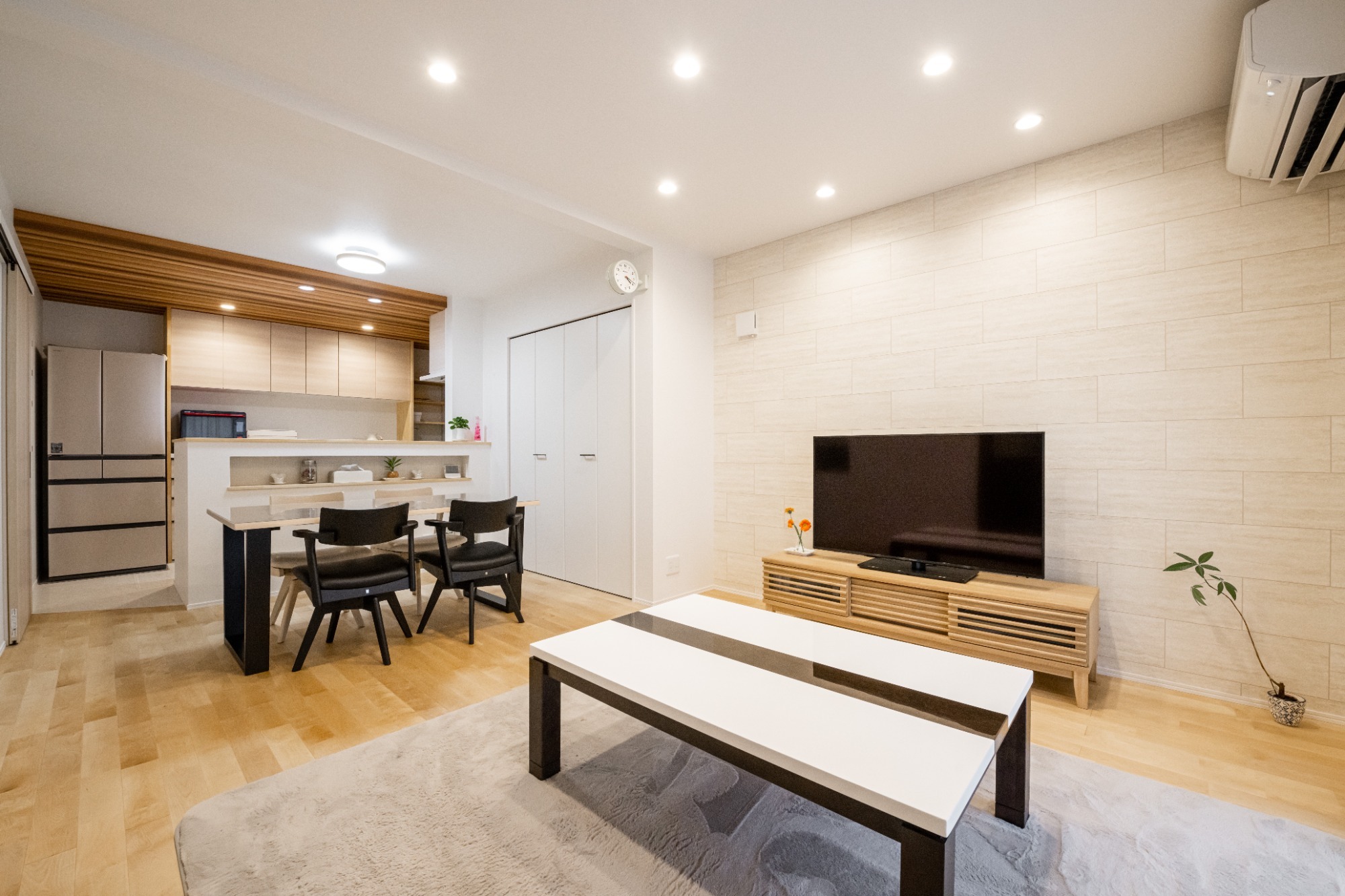 ナチュラルな木目×引き締めブラックでお洒落なリビング