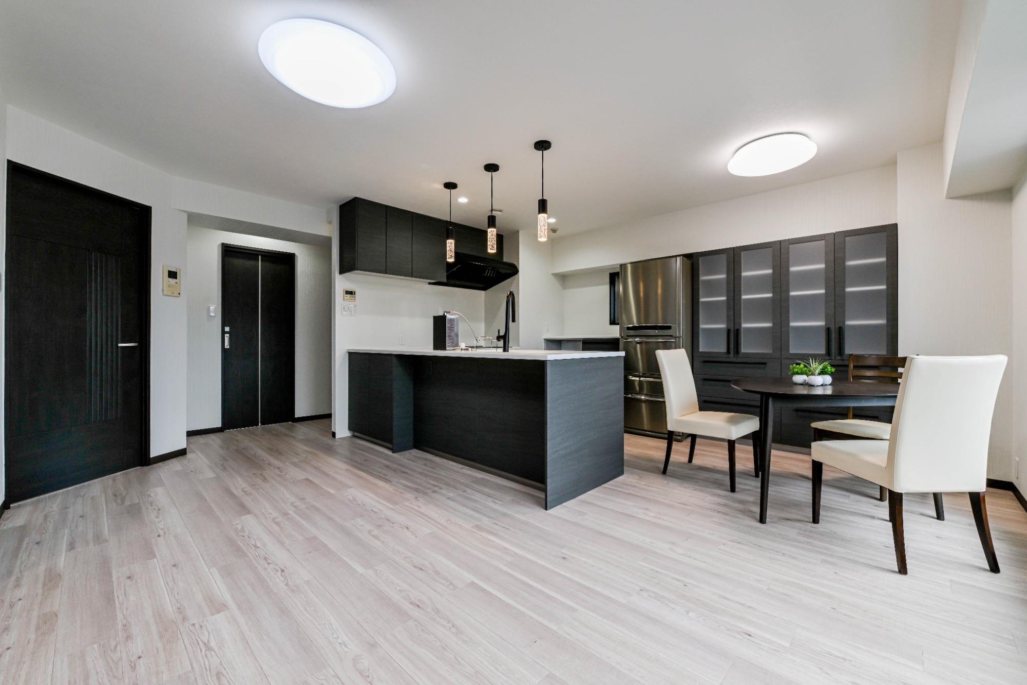 色を絞ったモノトーンで統一感が生まれたLDK