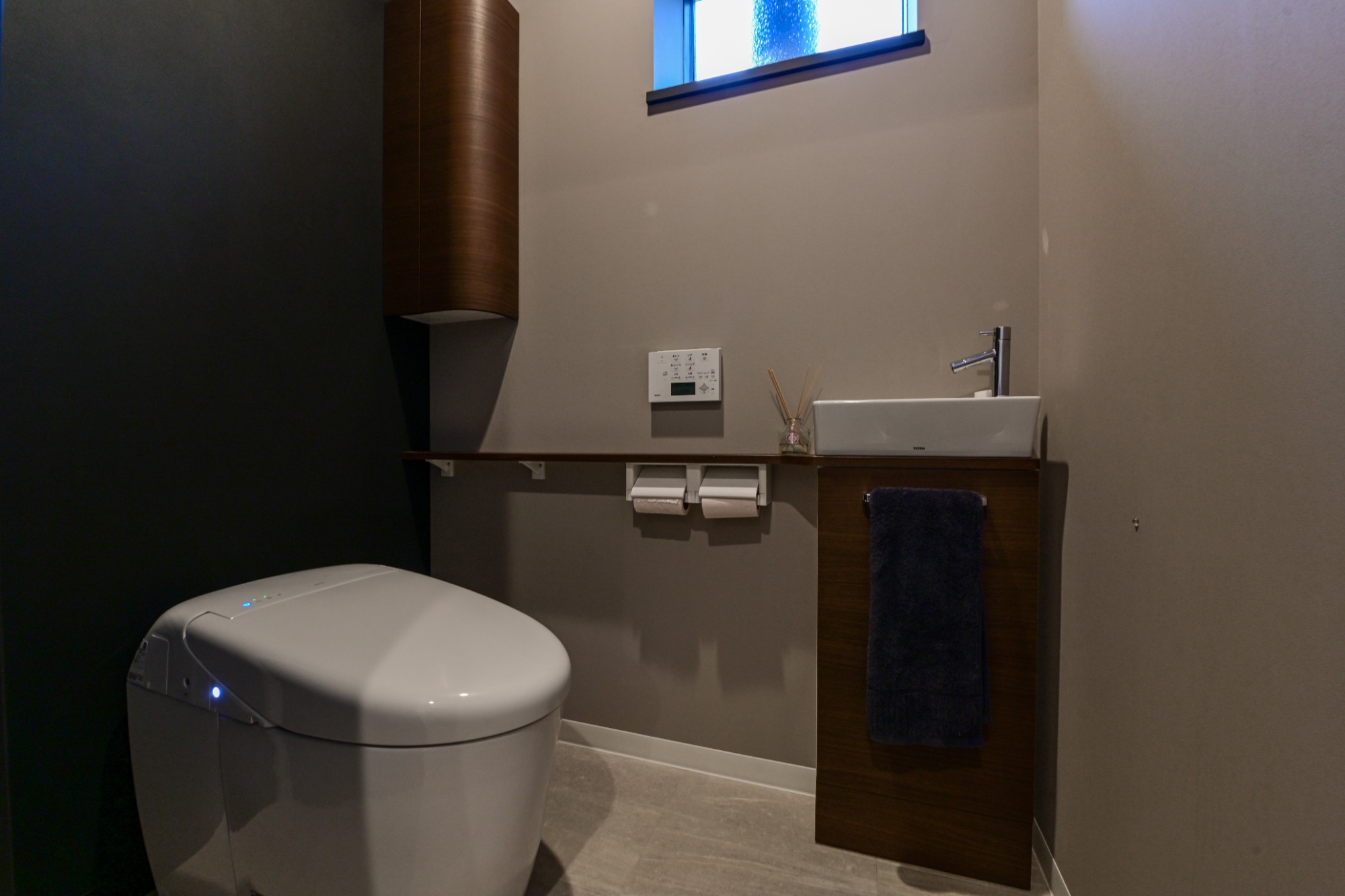 - 和風旅館をイメージした趣ある手洗いやトイレ