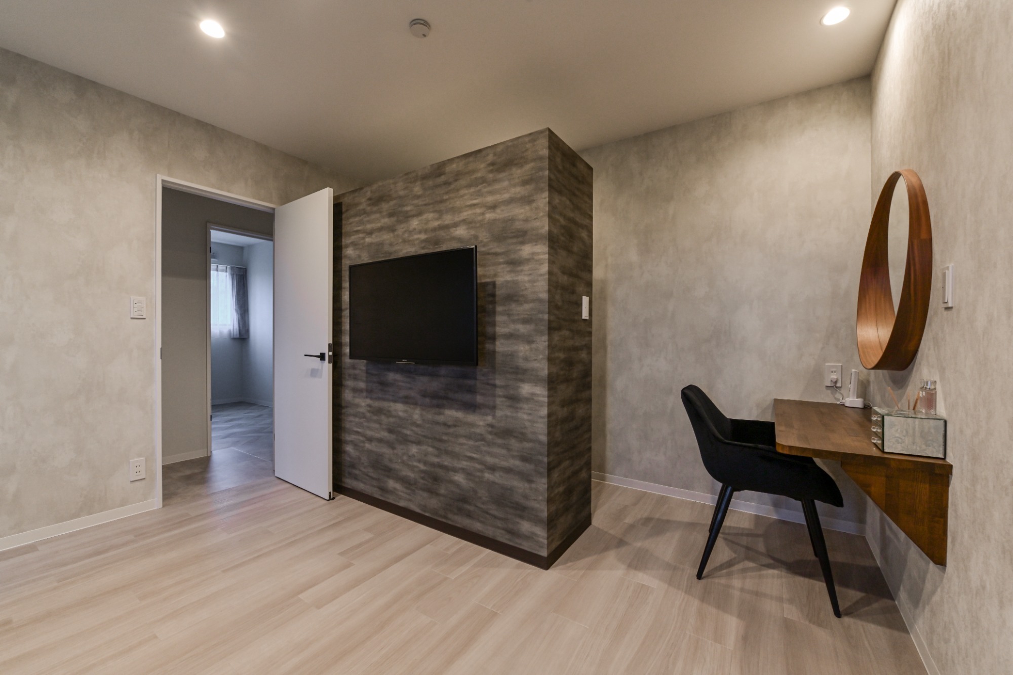- 主寝室には壁掛けテレビと化粧コーナーを設置