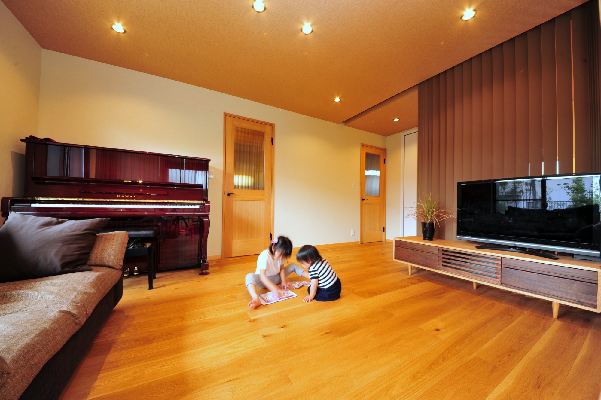 - オークの無垢床が、足触りと木の温もりを感じさせる室内に