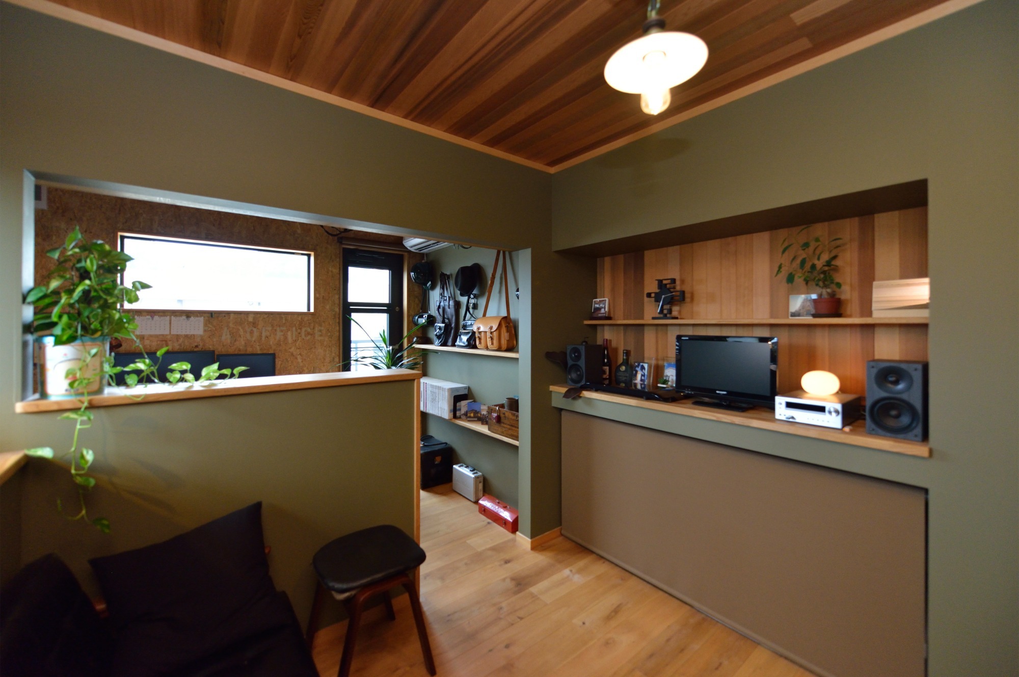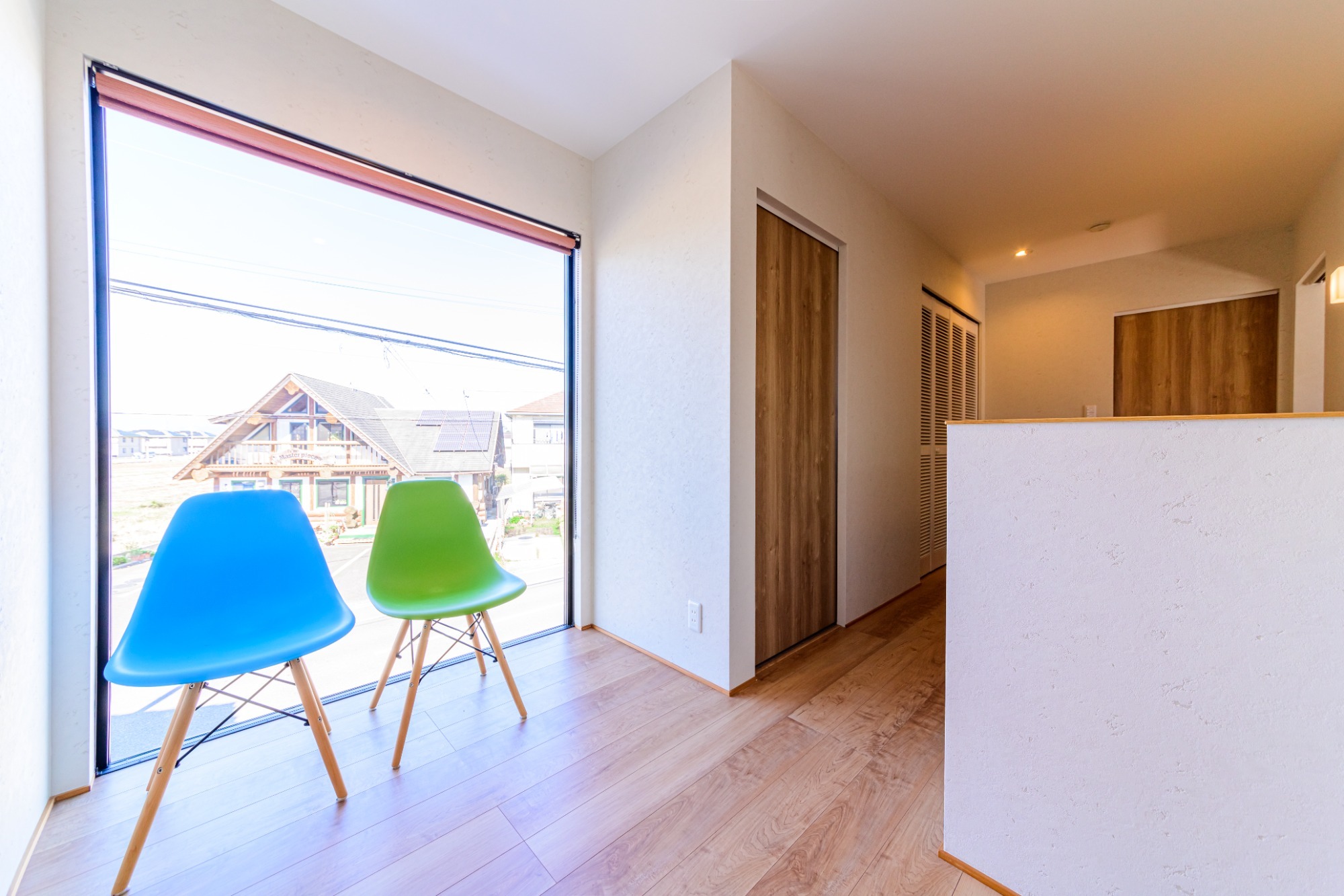 - 1段上がった4帖の書斎が、こもり感と使いやすさを両立