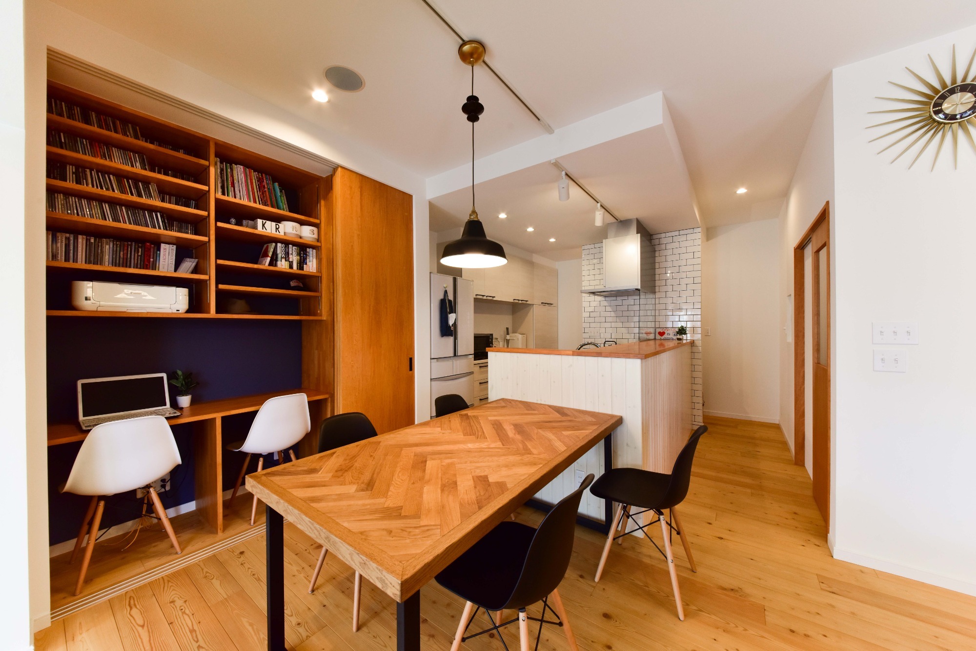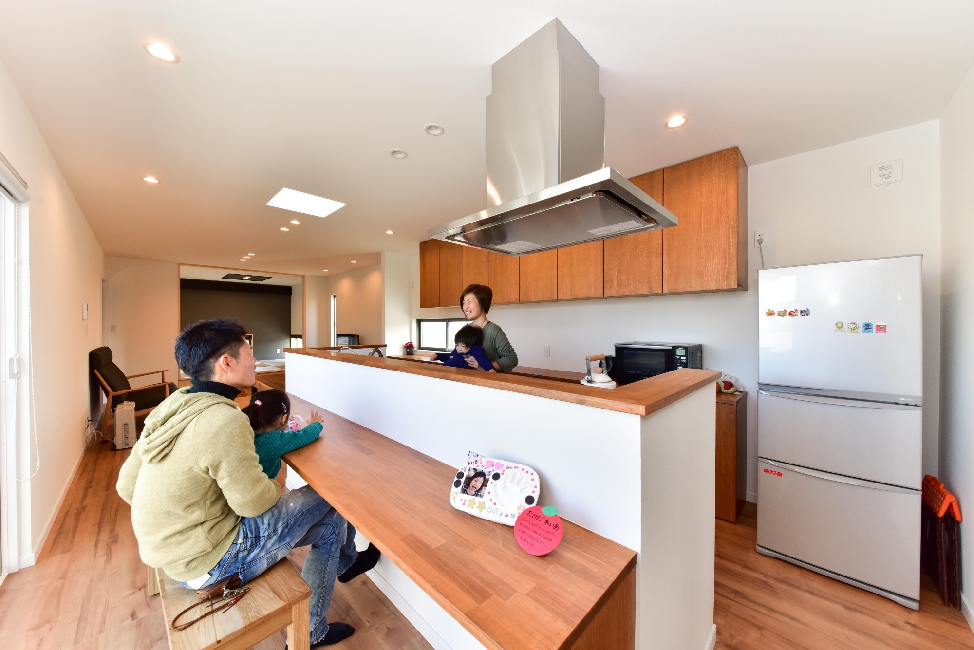 - キッチン前の4人掛けカウンターが、食事も会話も楽しめる場に