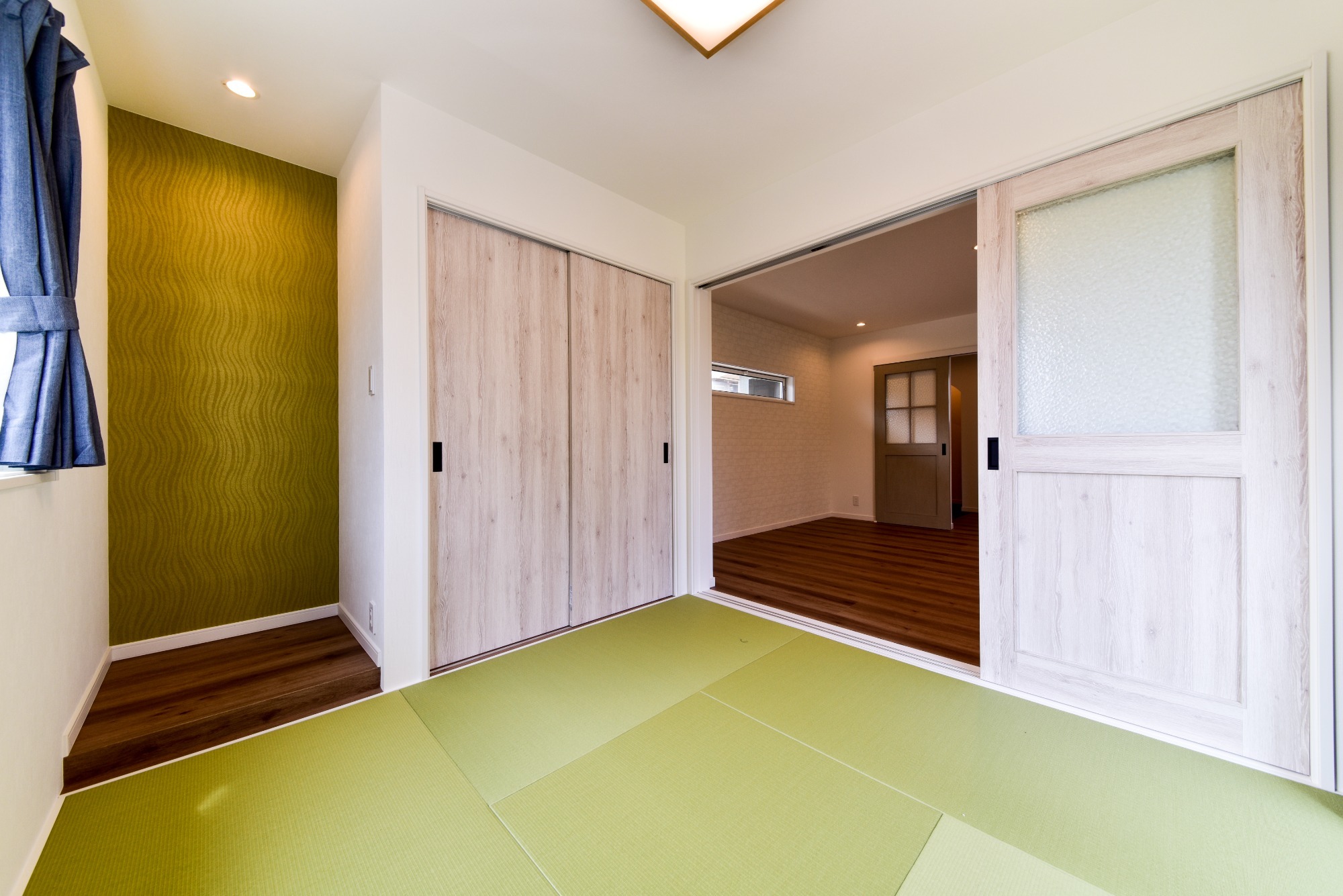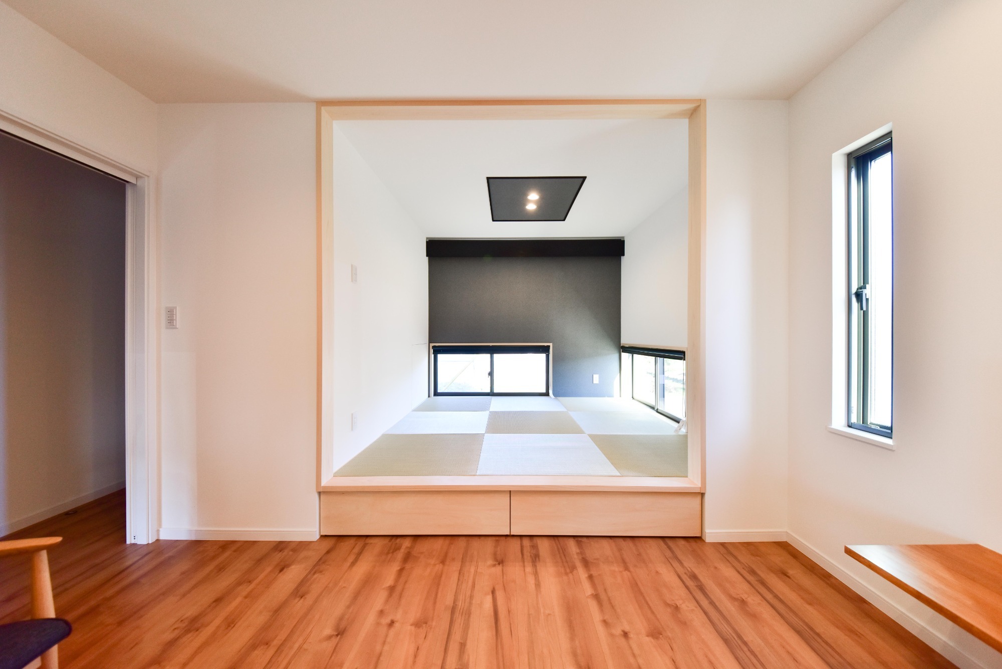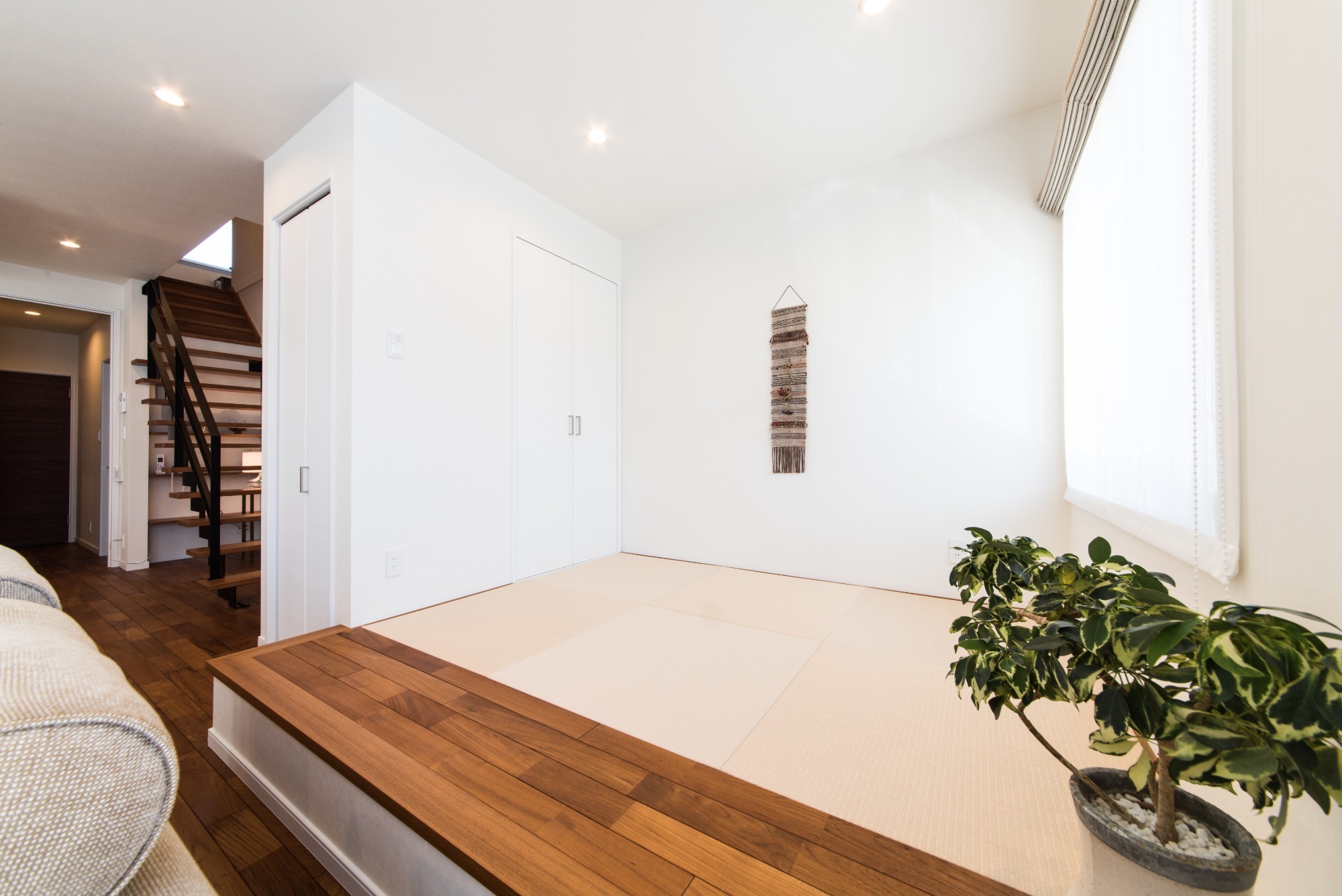 - 1段上がった畳コーナーが、くつろぎと空間の変化を生む設計