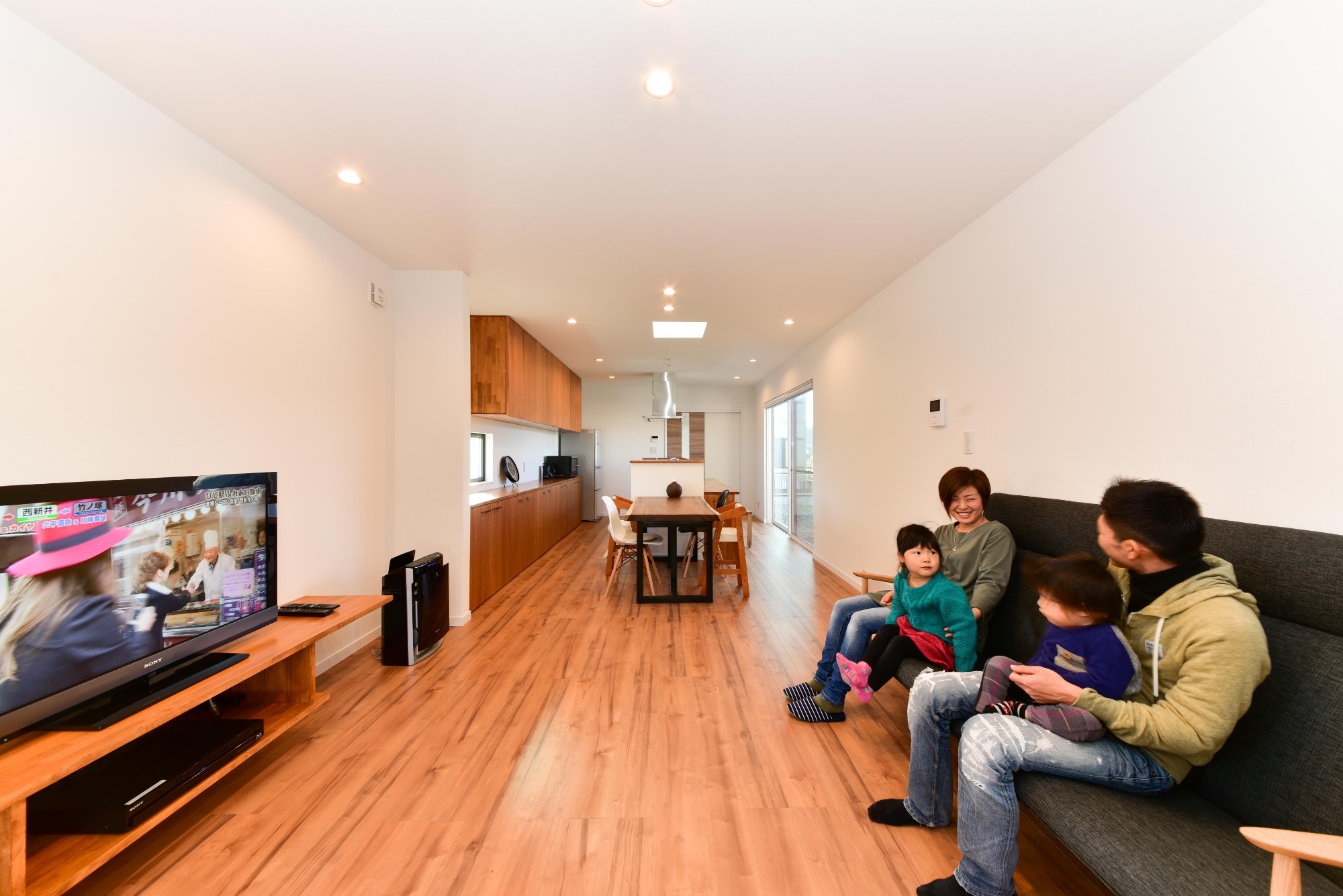 - 縦長のLDKが、視線と動線に広がりをもたらす開放的な空間に
