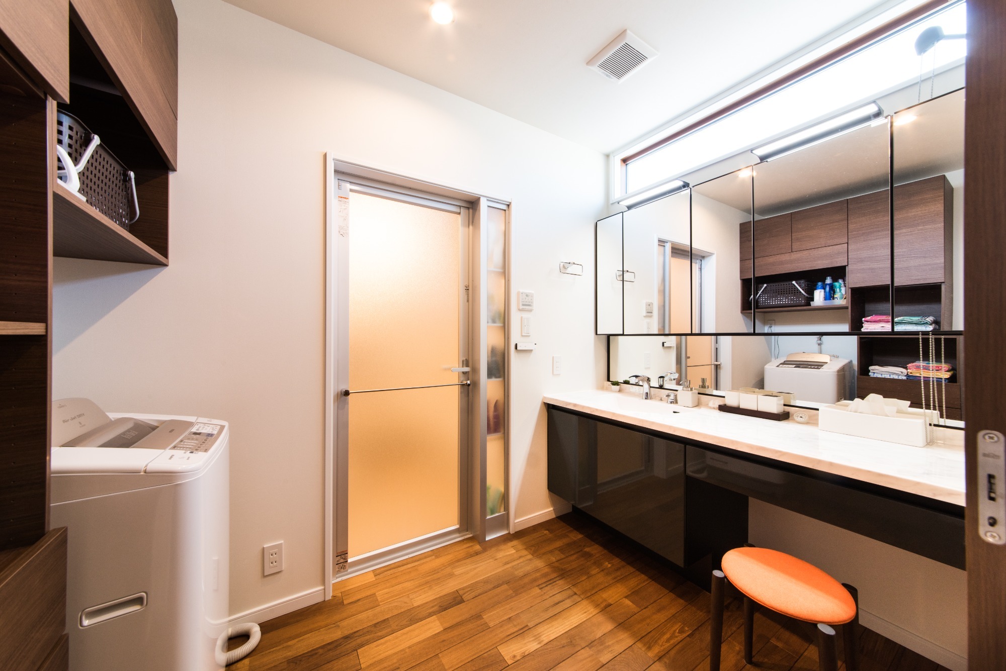 - 玄関横の洗面台が、帰宅後の動線や来客時にも便利な設計に
