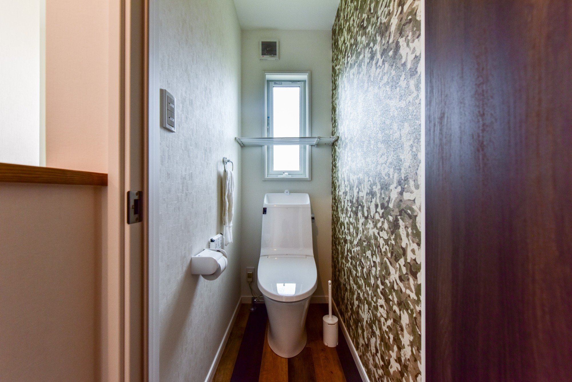 - 造作棚を設け、日用品がすっきり収まる収納設計