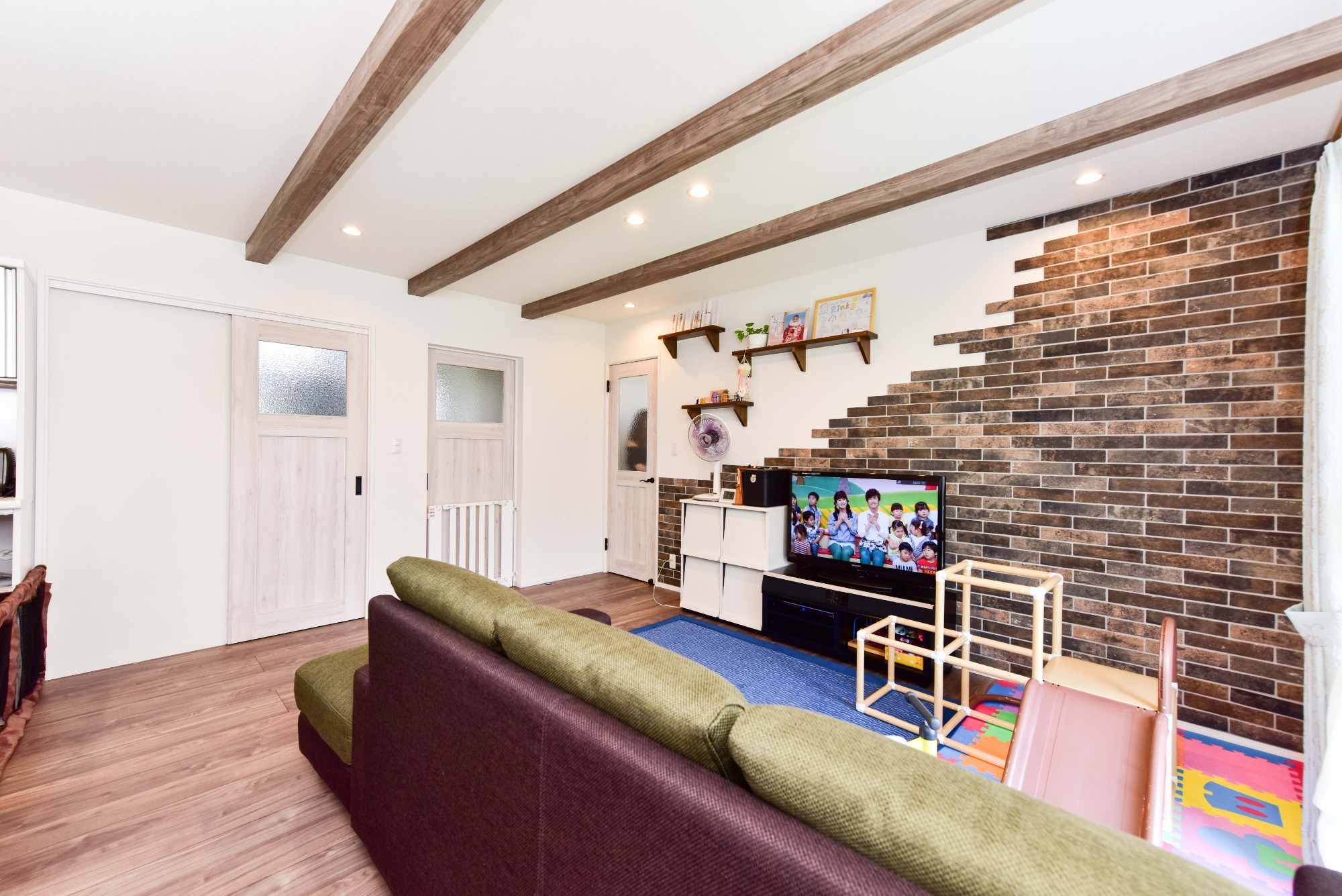 - リビングには表し梁があり、木の力強さと温もりを感じる空間に
