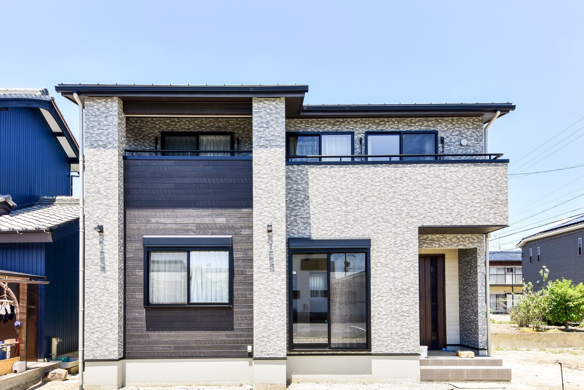 - 黒のガルバリウムが外観に重厚感と個性を演出