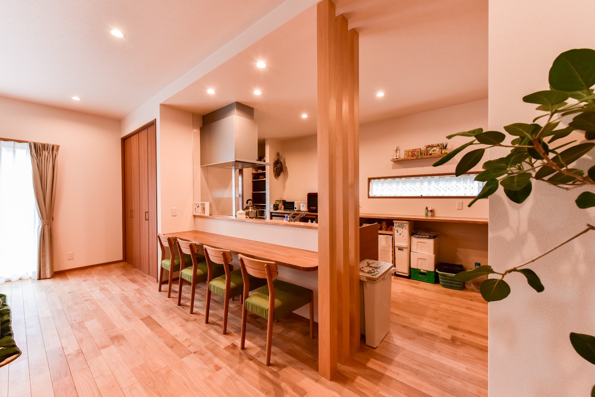 - キッチン前のカウンターが、食事も会話も楽しめる
