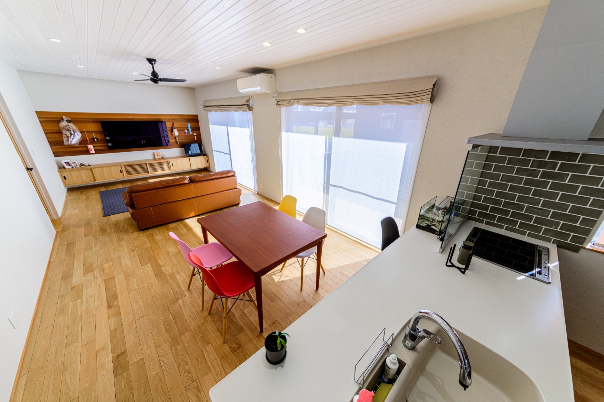 - 横長のLDKが、視線と動線に広がりをもたらす開放的な空間に