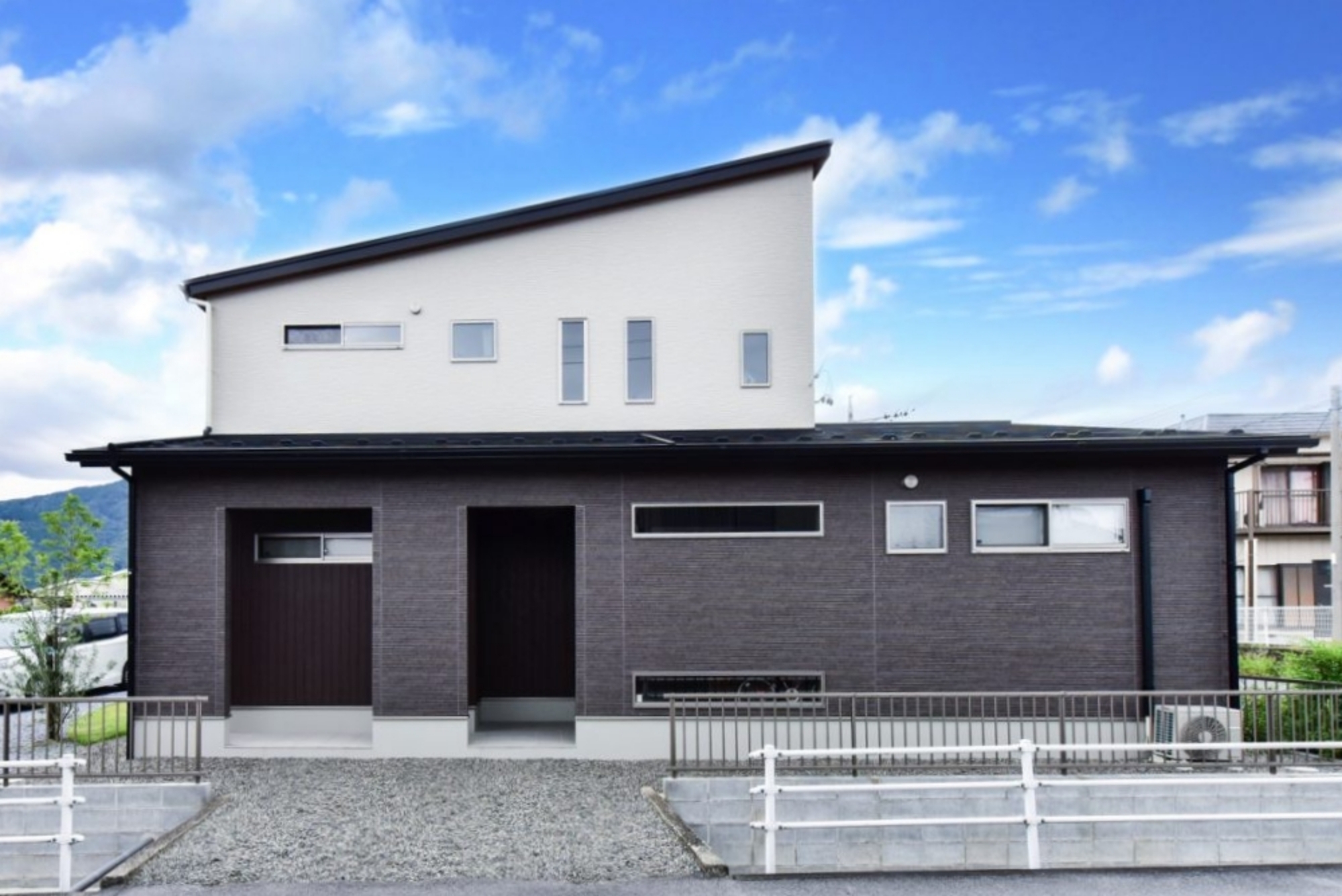 - 片流れ屋根と白黒の張り分けが、すっきりとした印象の外観に