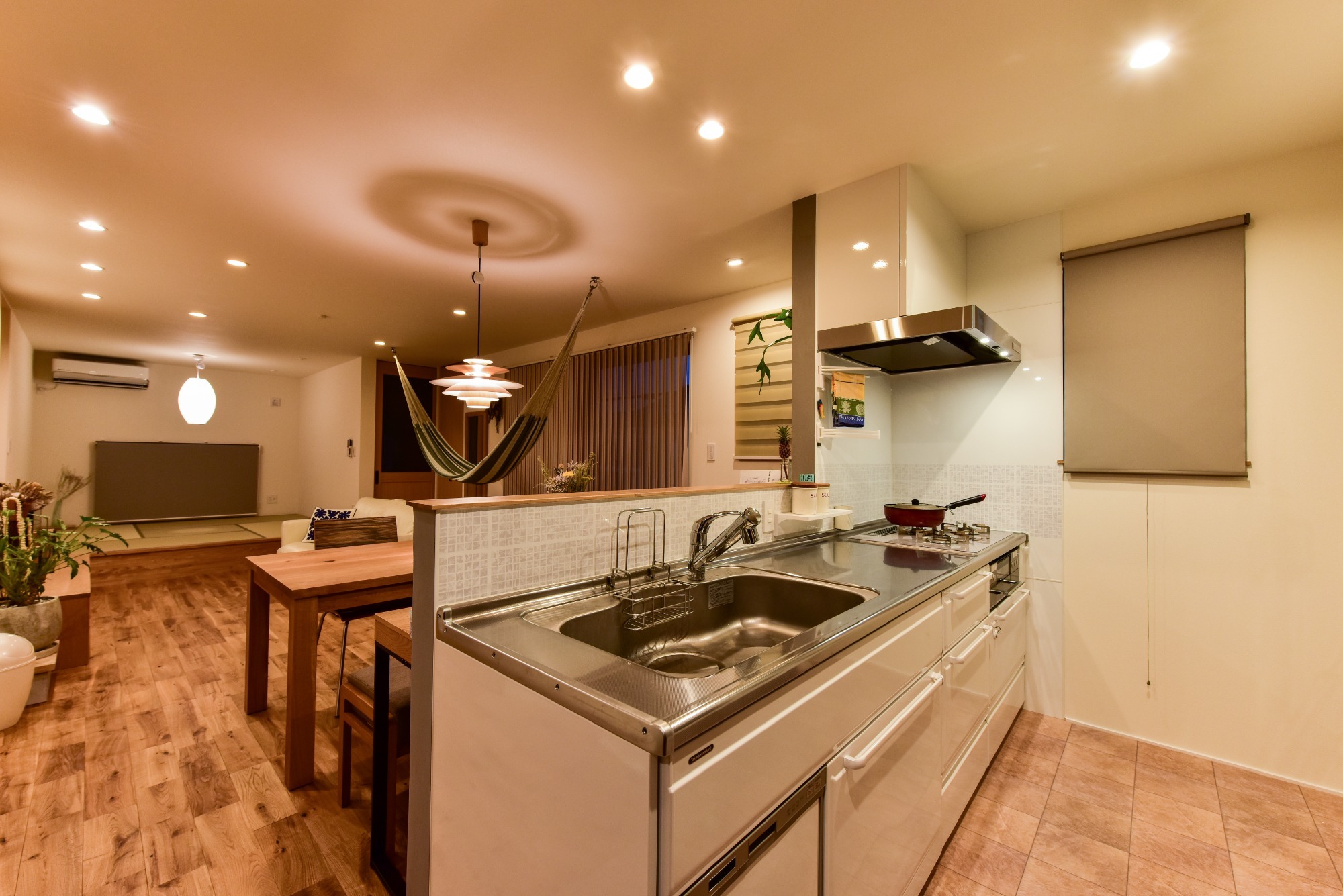 キッチンを囲んで過ごせるカウンターは、家族との触れ合いの場