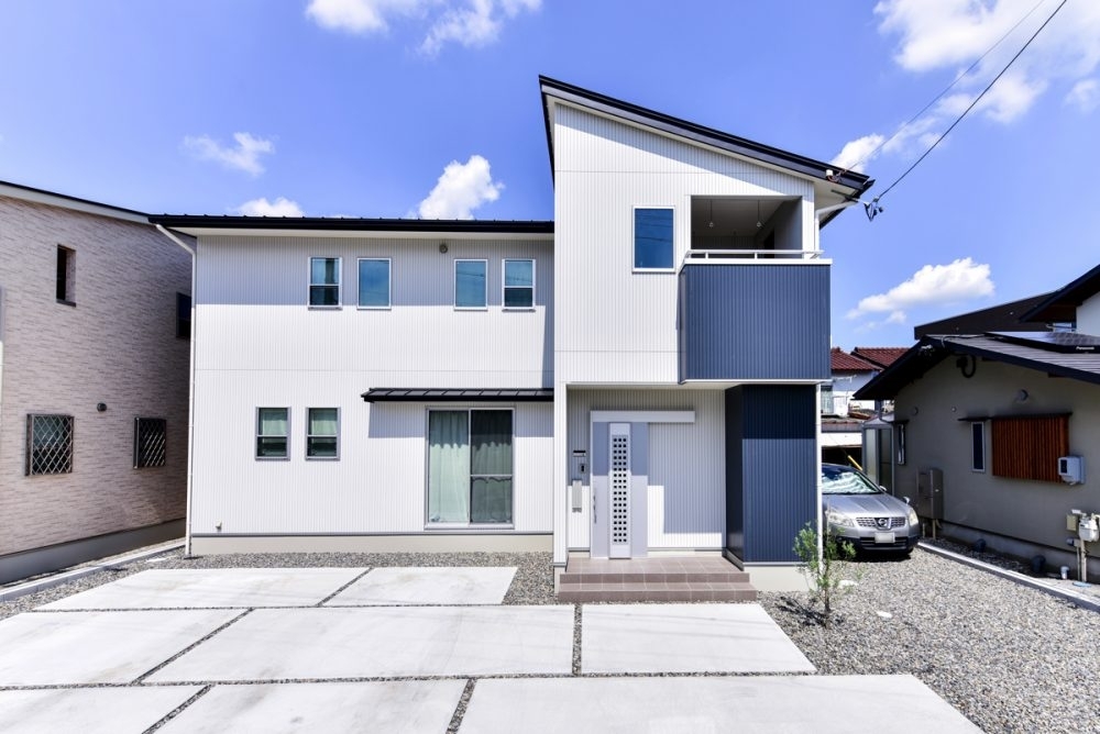外観は白を基調に、片流れ屋根ですっきりとした印象に