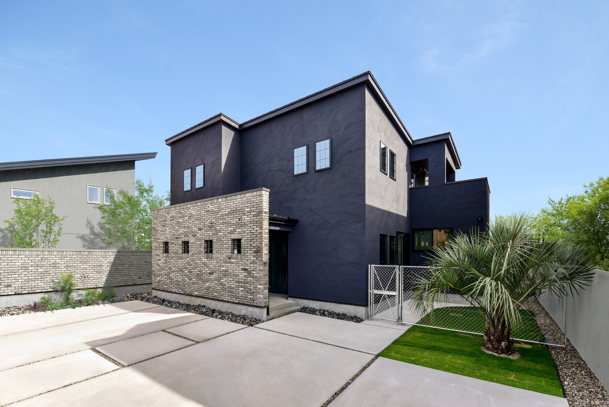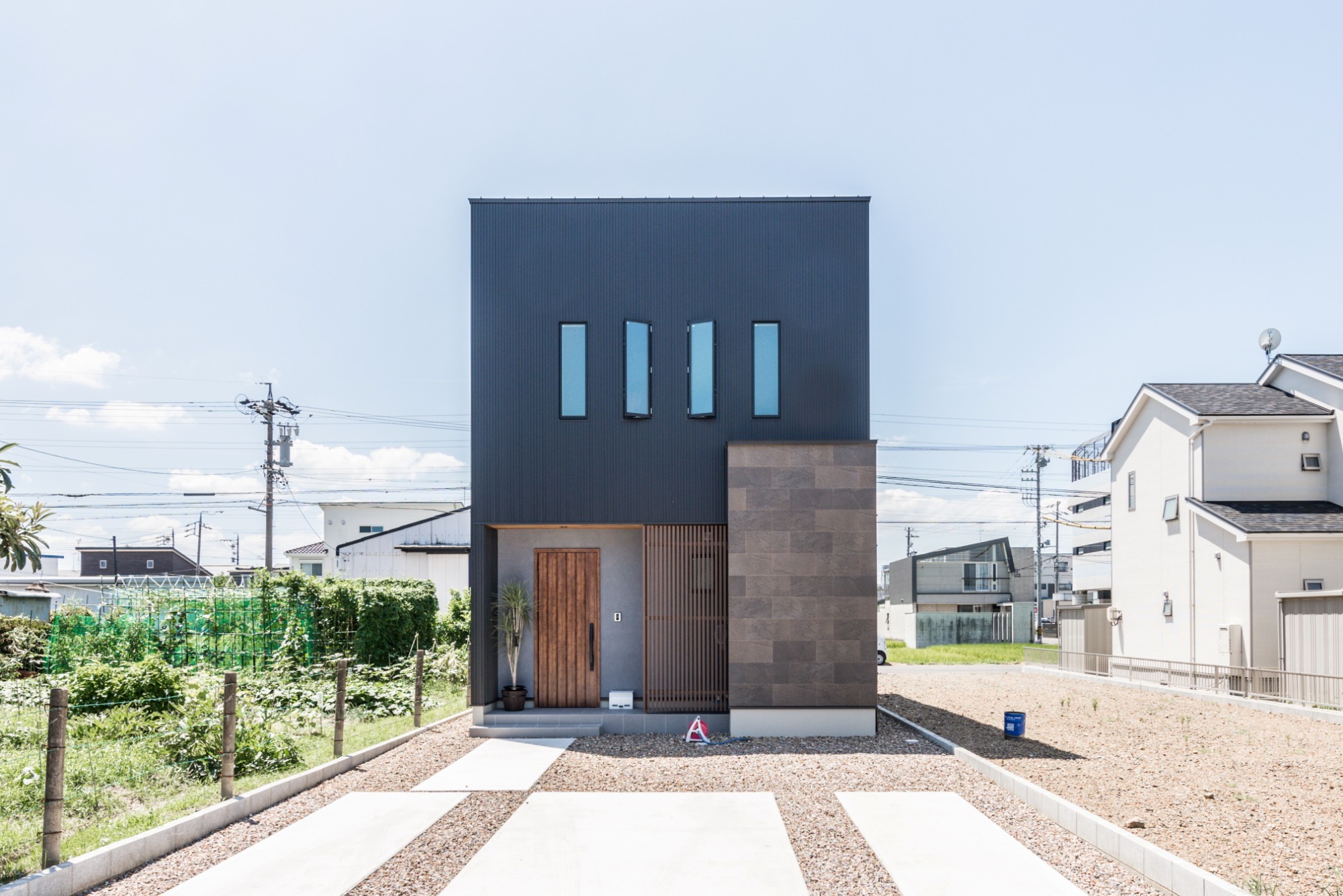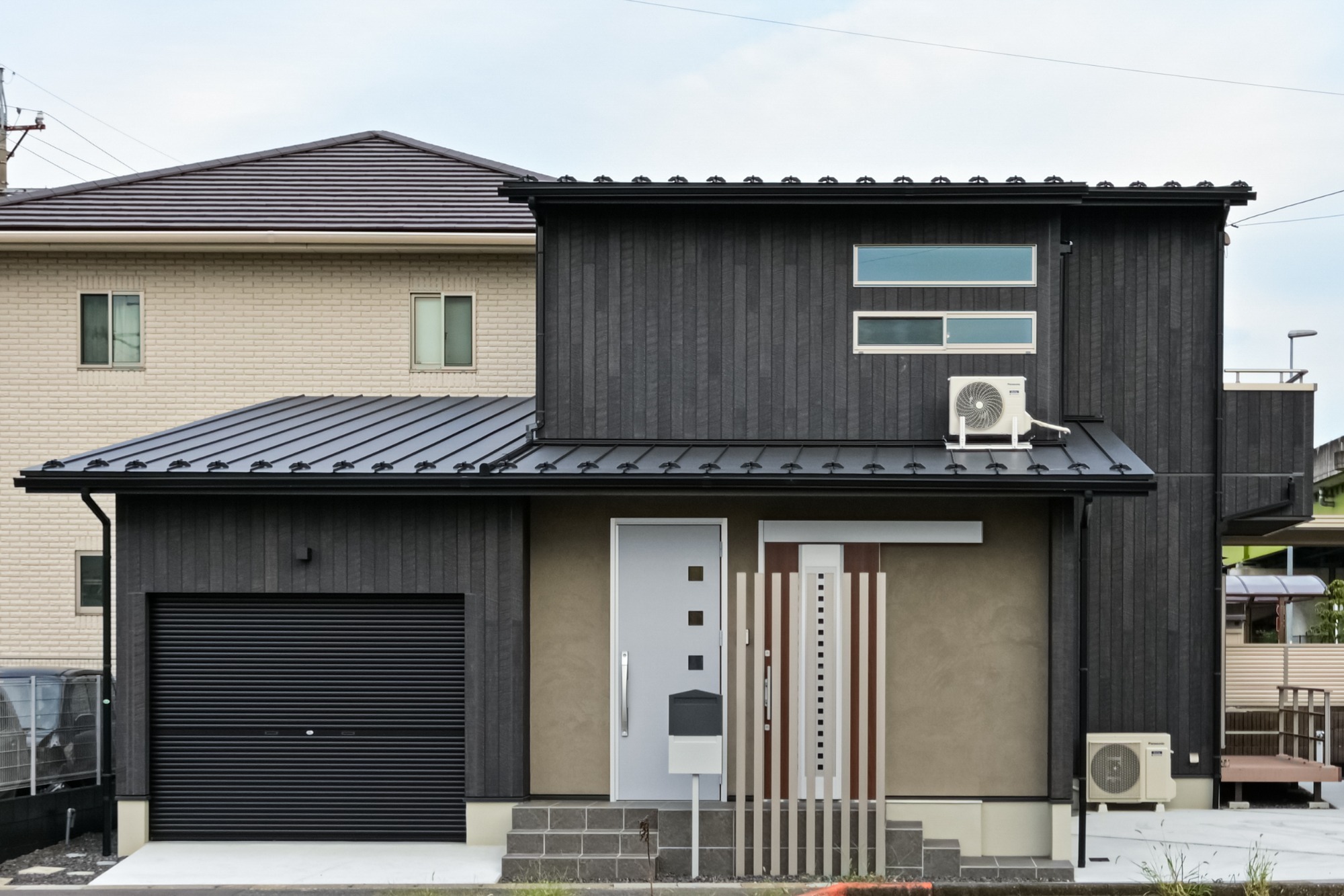 黒の木目外観が印象的な、スタイリッシュな佇まい