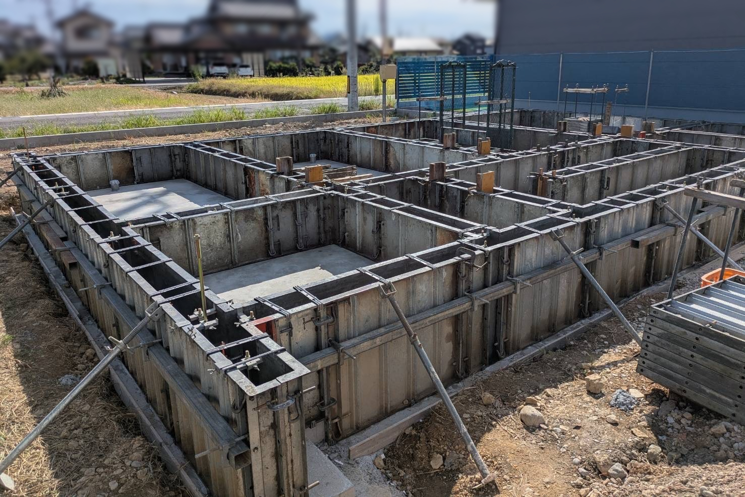 本日、現場では基礎工事が順調に進み、基礎立ち上がりの施工を行いました。