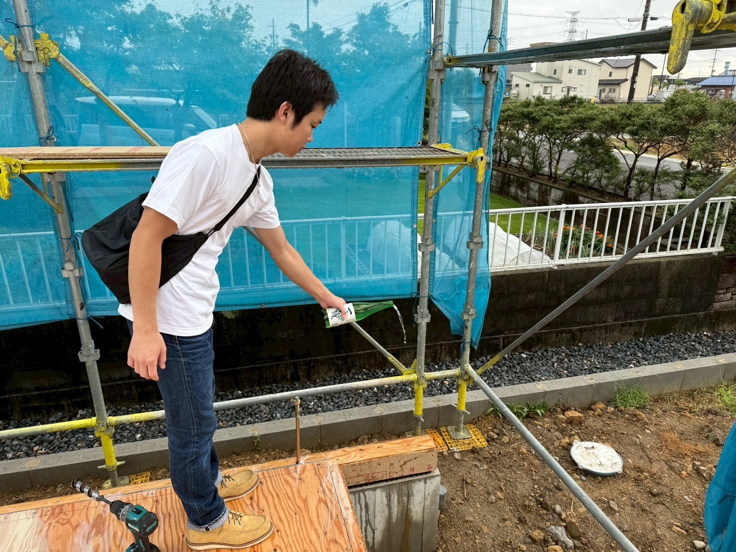 現場には静かな緊張感と、着実に進んでいく工程への安心感が漂い、お施主様によるお清めも滞りなく執り行われ、建物の無事とご家族の幸せを願う、あたたかな時間となりました。